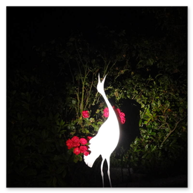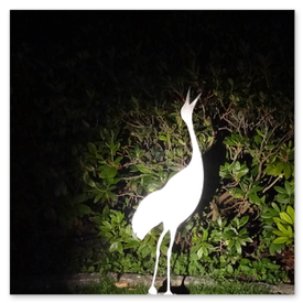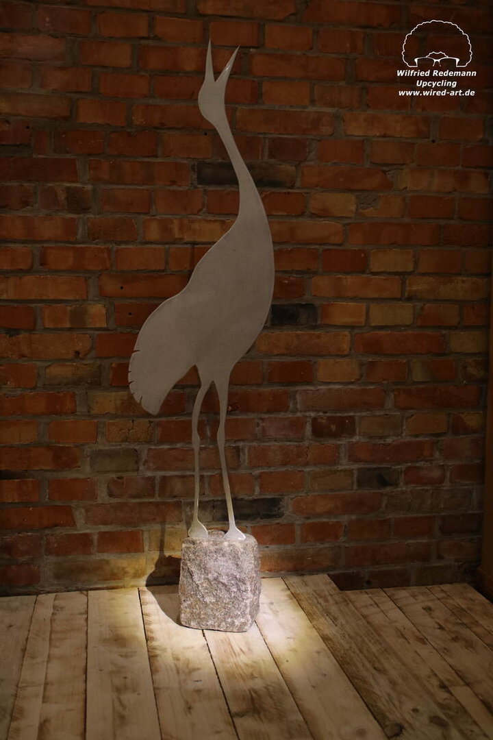 Dieser Kranich ist aus Aluminum und hat einen Granitsockel.
